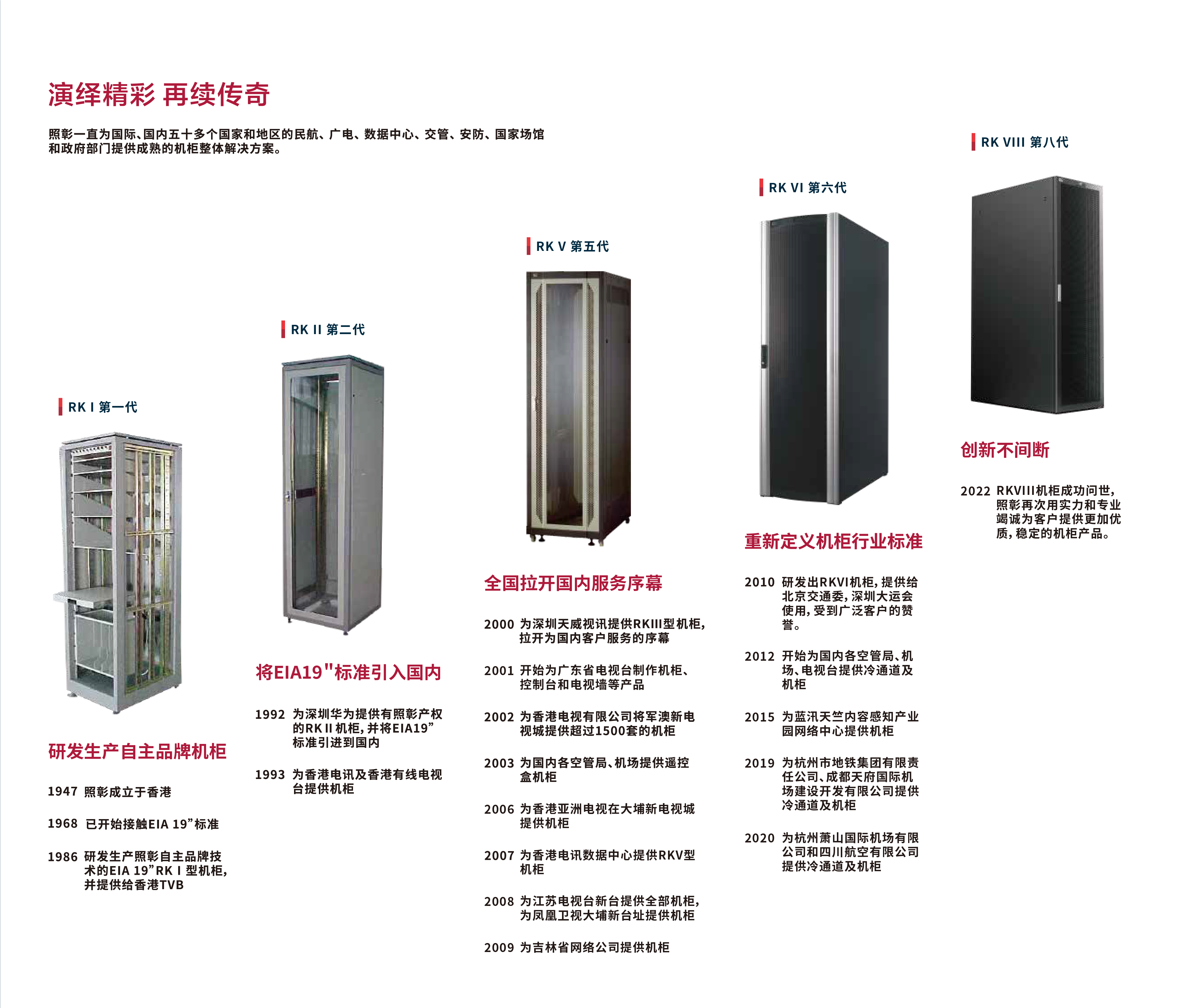研发生产照彰自主品牌技 术的EIA 19” RKⅠ型 机柜,并提供给香港TVB